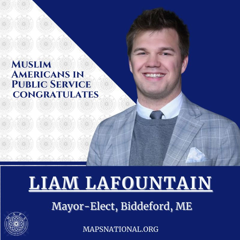 The post from MAPS congratulating Mayor LaFountain read as follows: "Rooted in faith and service to community, these wins are a testament to the Muslim public servants who work tirelessly to create a more perfect union. As we approach America's 250th birthday, Muslim Americans continue to indelibly shape the fabric of this nation".
